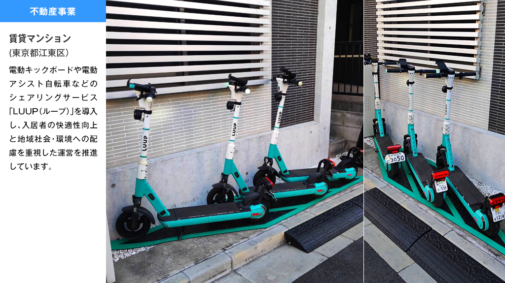 私たちは、再生可能エネルギー事業と不動産事業を通じて、クリーンエネルギーの活用、省エネの推進、環境に配慮した施設の整備を行い、お客様や地域の不動産価値の向上と環境価値の創出に取り組んでいます。